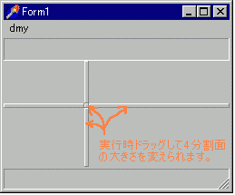 にしたフォームファイルです。実行時にスプリットバーをマウスでドラッグ
