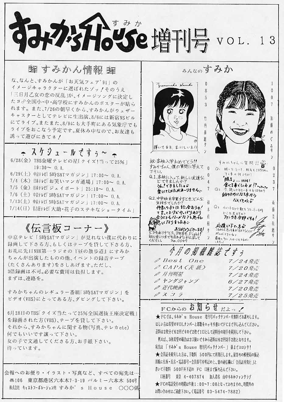 ファンクラブ会報 『すみか's House』の紹介です。
